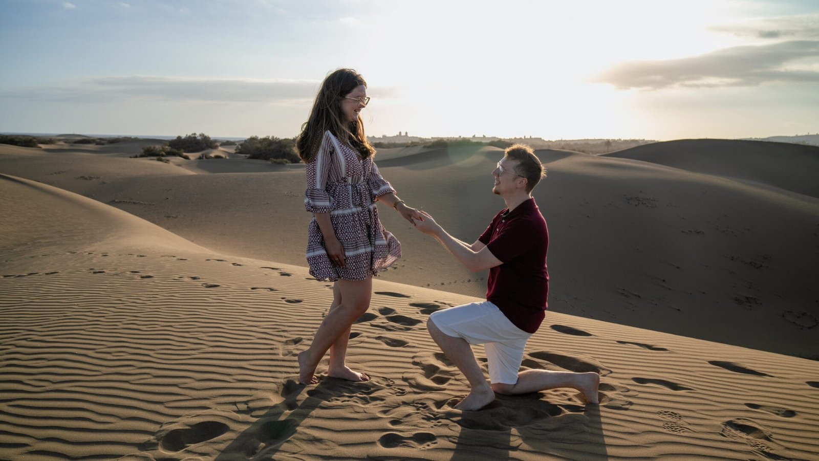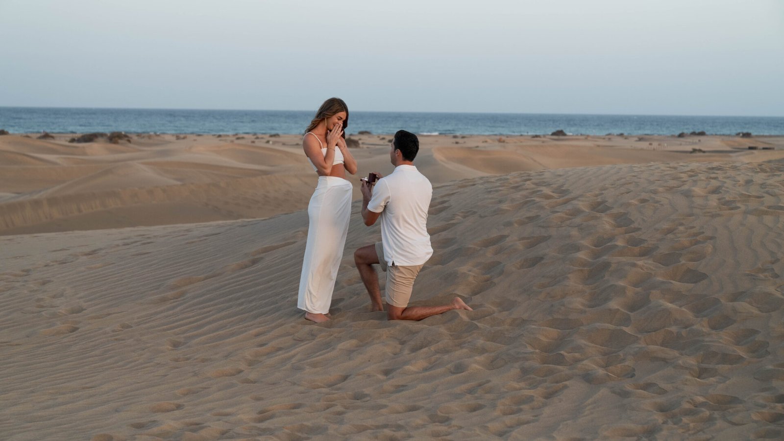 Su pedida de mano es un momento único en la vida, y estamos aquí para asegurarnos de que sea tan mágica como siempre ha imaginado. Con los impresionantes paisajes de Gran Canaria, los montajes personalizados y nuestros servicios profesionales de fotografía y videografía, su día especial quedará plasmado de una forma que recordará para siempre. Ya sea un picnic romántico en la playa, una puesta de sol en las dunas o un momento íntimo en un acantilado aislado, le ayudaremos a crear recuerdos que durarán toda la vida.